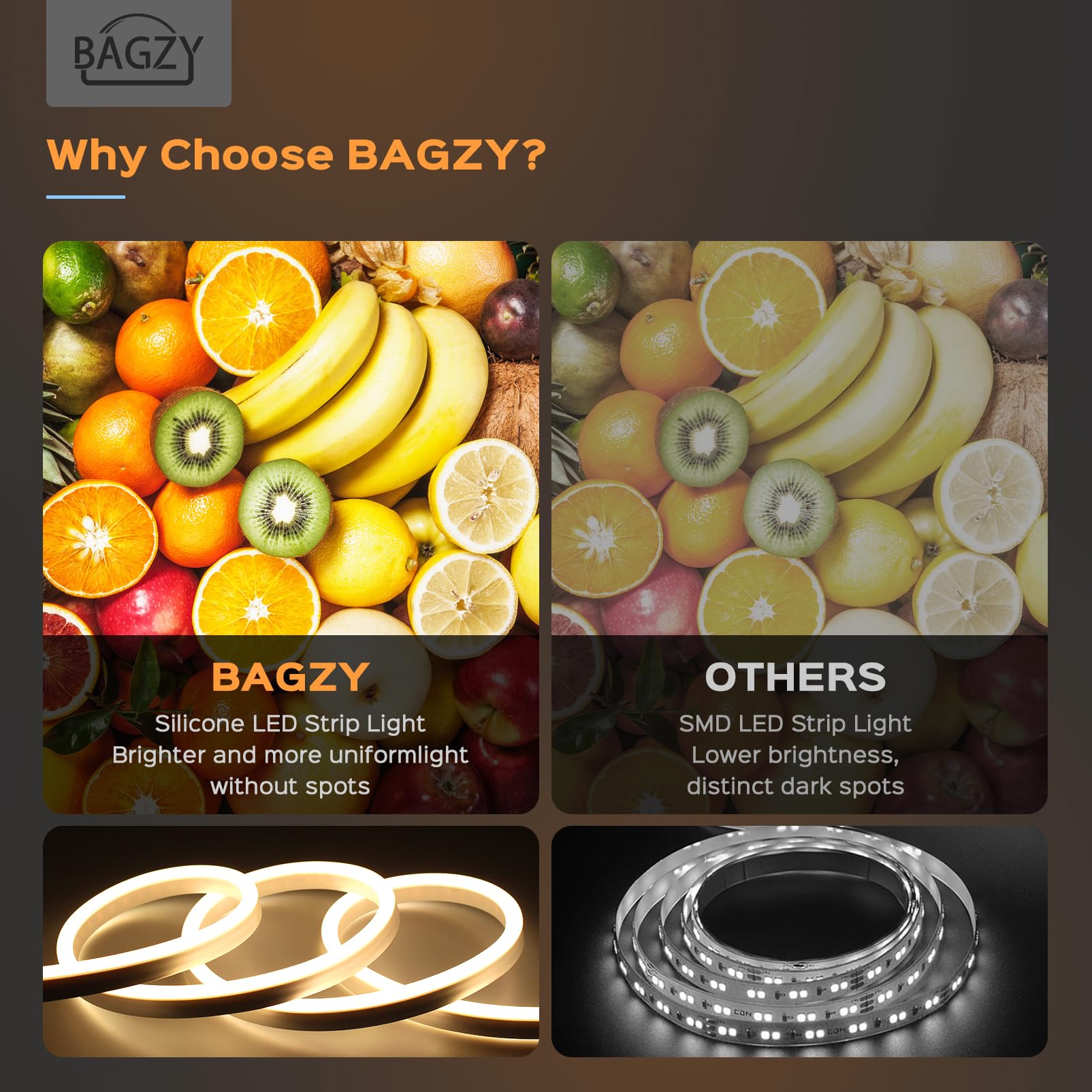 - 👉【Superhell】BAGZY Neon LED streifen hat ein seitlich emittierendes Design, das heller ist als gewöhnliche LED-Lichtleiste. Mit einem Projektionsbereich von 120 Grad ist auch aus nächster Nähe kein Lichtpunkt zu sehen. Das Licht ist sehr weich! Leistung: 9-12W/m, Größe: Breite 8mm, Höhe 13mm, Leuchtdurchmesser: 8mm. Anzahl der LED-Lampenperlen: 120 Stück/m.