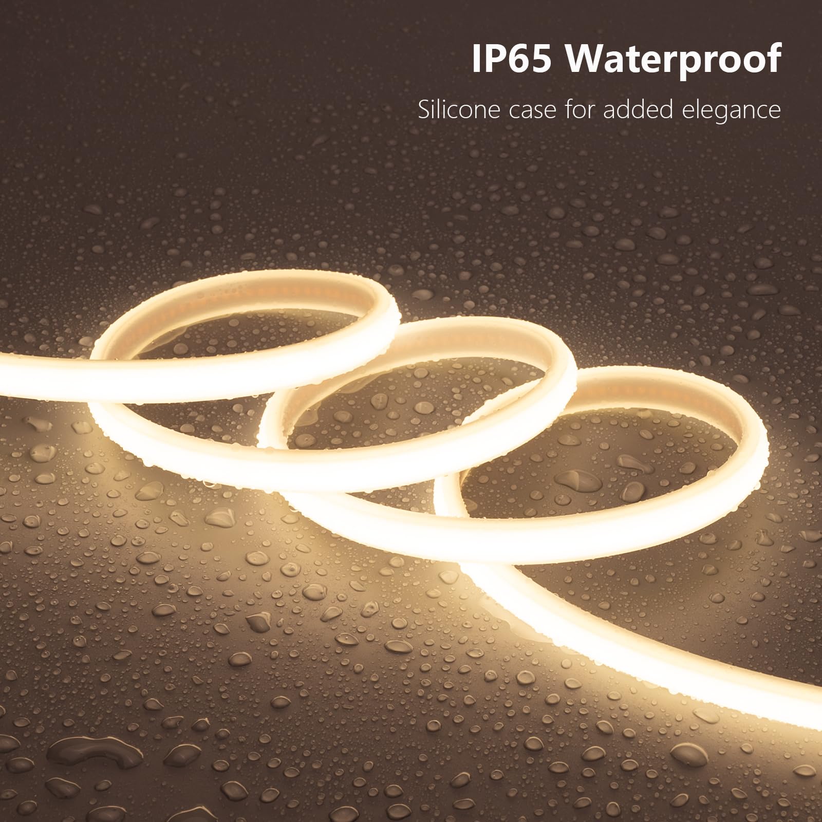 - 【COB LED Streifen Outdoor 20M】COB led streifen hat ip65 aussen wasserdicht Rating, geeignet für den indoor und Außenbereich indirekte beleuchtung, wie Schlafzimmer, Gärten, kommerzielle, aus Sicherheitsgründen, bitte nicht die flexible led schlauch in Wasser für eine lange Zeit setzen.