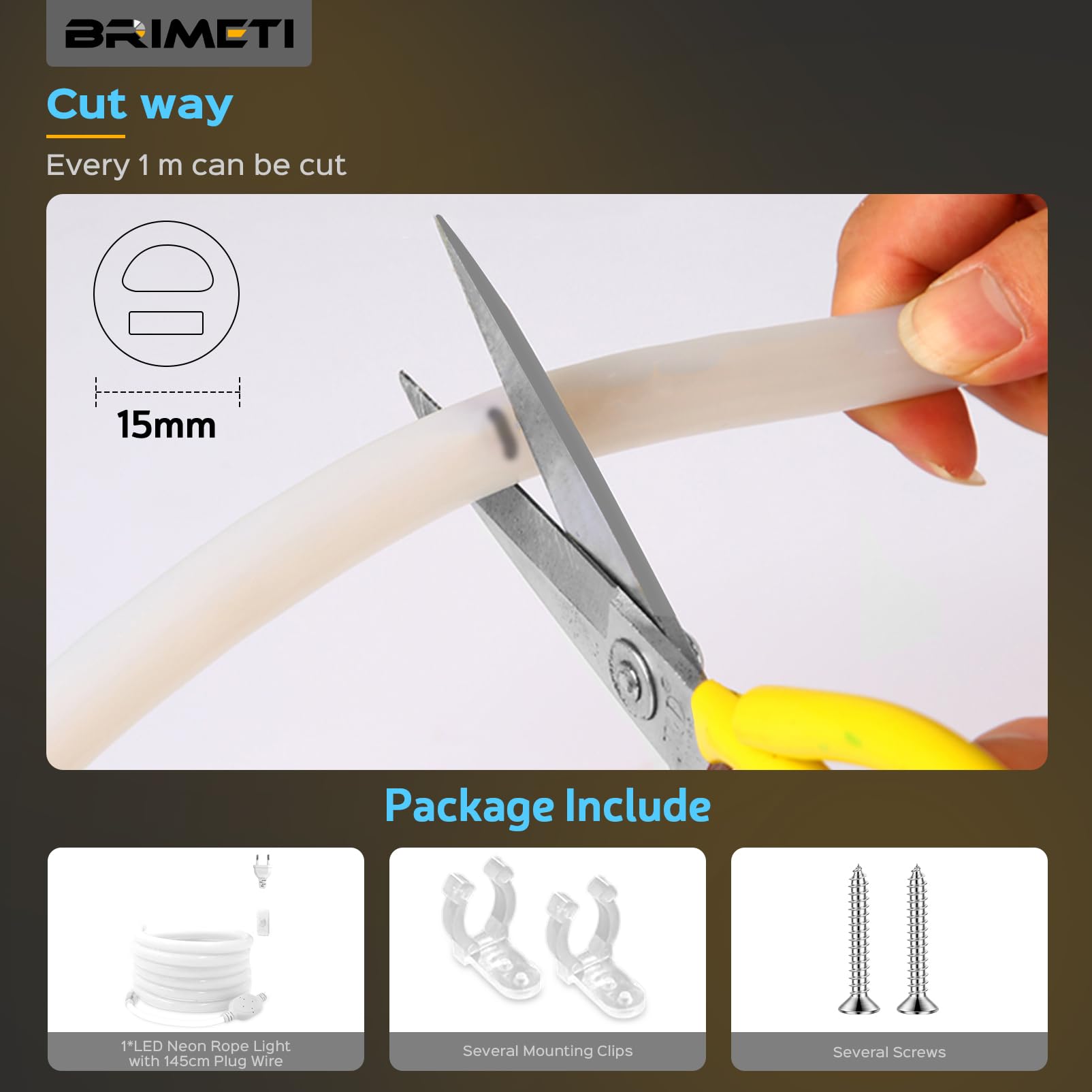 - 👉【Superhell】BRIMETI led neon strip hat ein 320° licht design, das heller ist als gewöhnliche LED-Lichtleiste. ist auch aus nächster Nähe kein Lichtpunkt zu sehen. Das Licht ist sehr weich! Leistung: 8W/m,Leuchtdurchmesser: 15mm. Anzahl der LED-Lampenperlen: 120 Stück/m. Helligkeit: 300 Lumen/Meter.