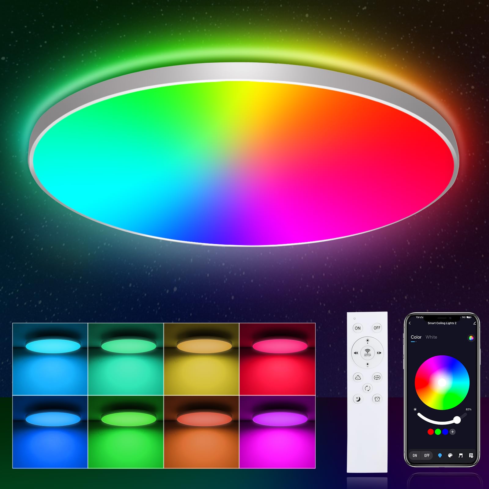 - 💡【Wechseln Sie nach Belieben】smart led deckenbeleuchtung gibt 16 Millionen alternative RGB Farbe, so dass Sie jede Stimmung wählen können.Die dimmbaren Raumdeckenleuchten können die Farbtemperatur von Warmweiss bis Kaltweiss und Der einstellbare Helligkeitsbereich beträgt 1%-100%.Klare Empfehlung für kleinere bis mittlere Räume, wenn man eine gleichmäßige und helle Beleuchtung sucht, die man nach seinen Wünschen einstellen kann. Schaffen Sie eine attraktive und Atmosphäre in Ihrem Zuhause
