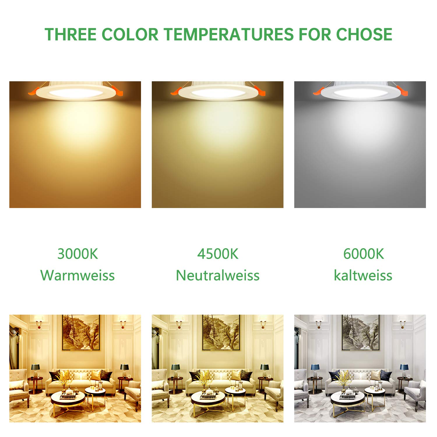 Farbtemperatur: 2700/4500/6000 Kelvin zur Auswahl. Nicht dimmbar.